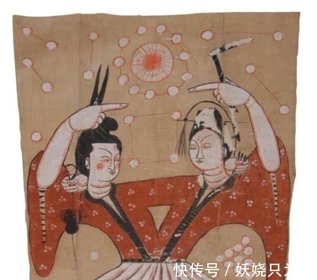 新疆古墓出土一幅奇画,女娲手里拿的啥西方中